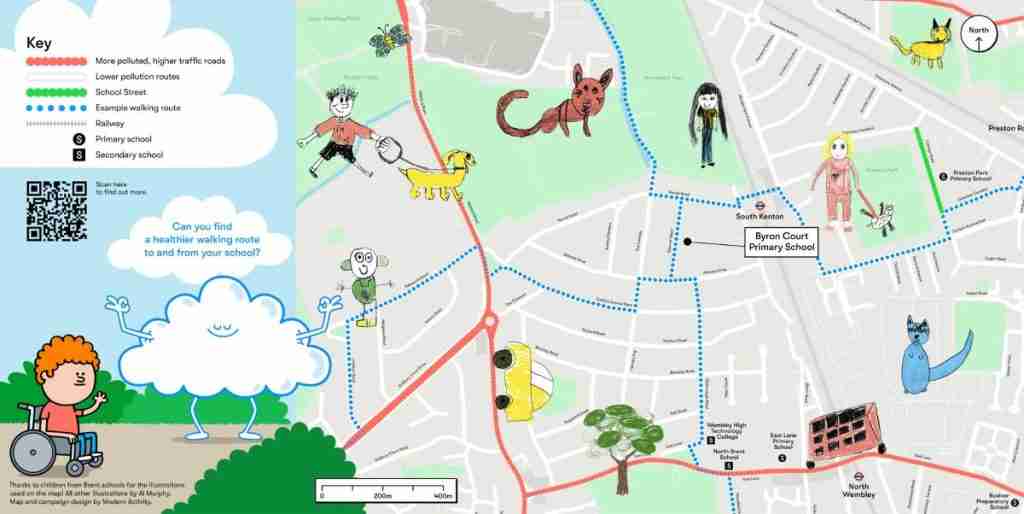 Brent Council commissioned us to develop a specific Breathe Clean website for them. All you need to do is write in your school name and the walking map for that school pops up.